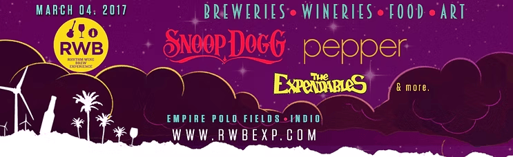 Calling all foodies, craft beer enthusiasts, La Quinta residents, and music lovers. Okay, that should cover everyone. The 6th Annual Rhythm, Wine & Brews Experience returns to Empire Polo Club’s fields on Saturday, March 4th, 2017. Presented by Empire Music Ventures, the 2017 line-up includes Snoop Dogg, Pepper, The Expendables, Andy Frasco, and Spankshaft, along with more than 100 breweries, wineries, and food trucks. Craft breweries and wineries will serve tastes of regional beer and wine from 3:00 PM– 7:00 PM as guests enjoy performances by American blues artist Andy Frasco and ska-punk band Spankshaft on the Tasting Stage. Experience craft beer and wine tasting from a huge selection of vendors, colorful art installations, and live music performed by five crowd-pleasing bands.