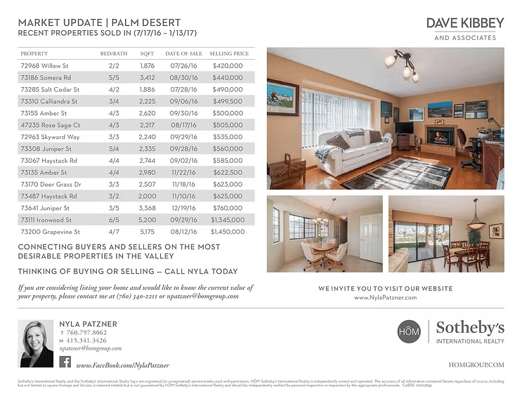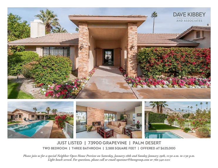 I wanted to share recent sales in the desirable South Palm Desert in the Grapevine area. If you are interested in listing your home, please call me for a more detailed report. 760.340.1111 + Scroll down for a recent listing located at 73900 Grapevine (on the golf course but no HOA!).